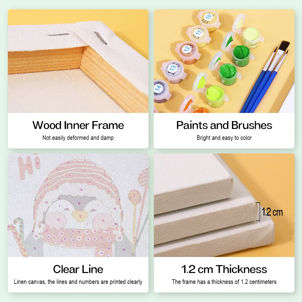 To create your mini masterpiece, simply match the paints to the numbered areas on the canvas, and watch your artwork come to life.