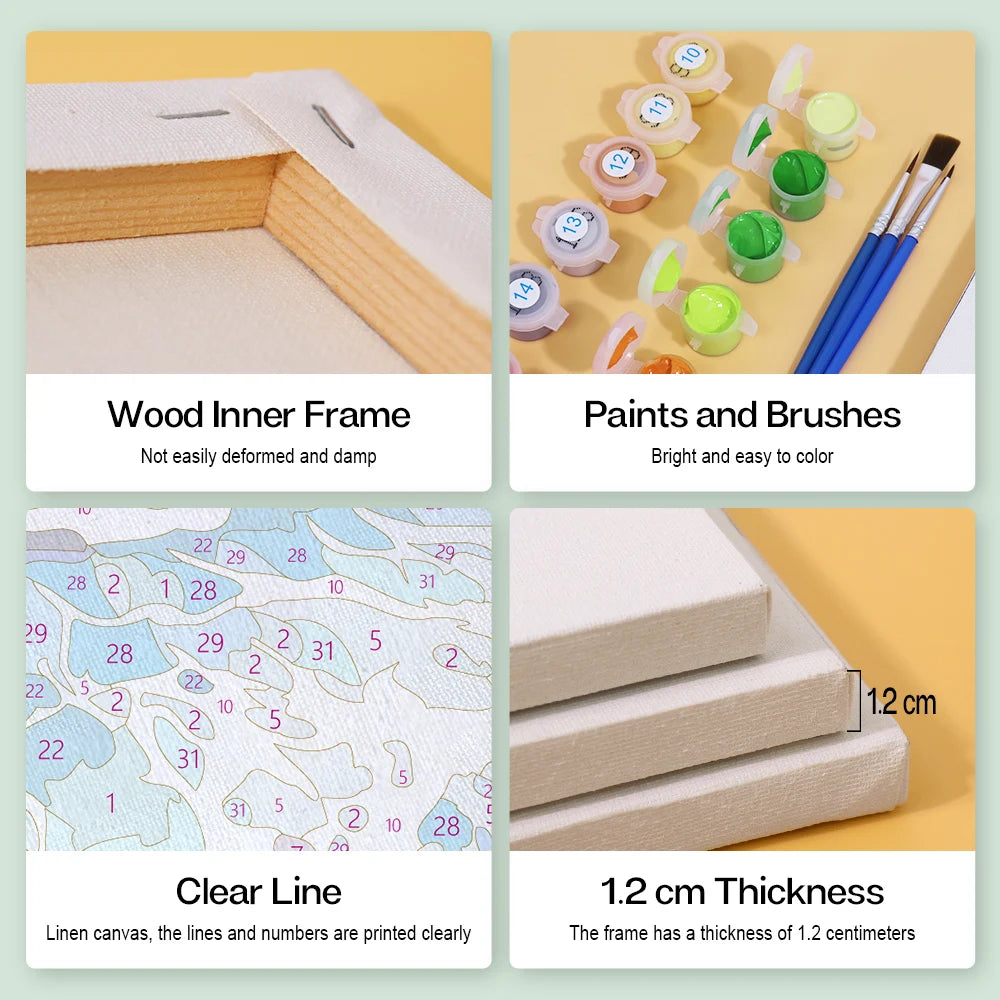 These kits provide all the essentials: pre-numbered canvases, a full range of non-toxic acrylic paints, and various brushes to suit your painting needs.