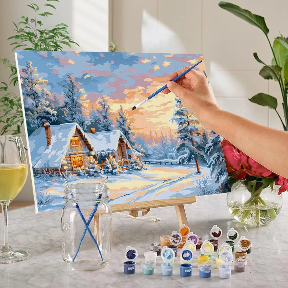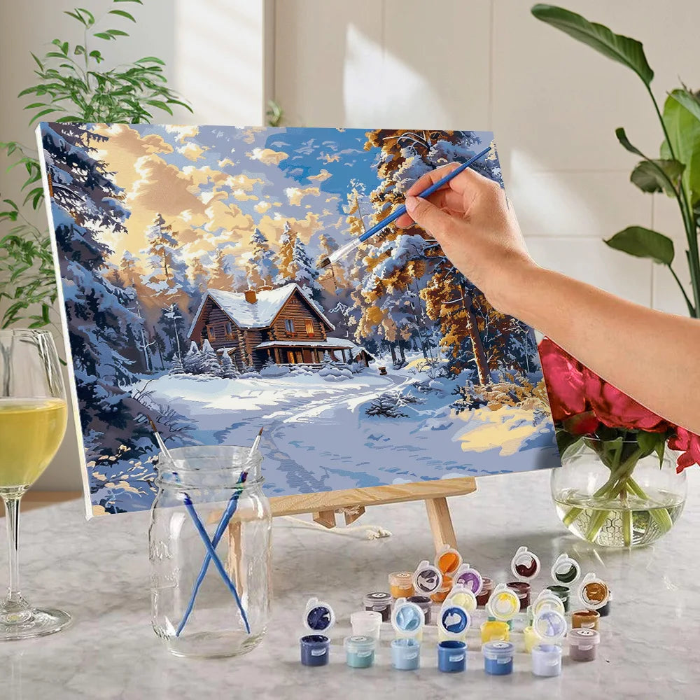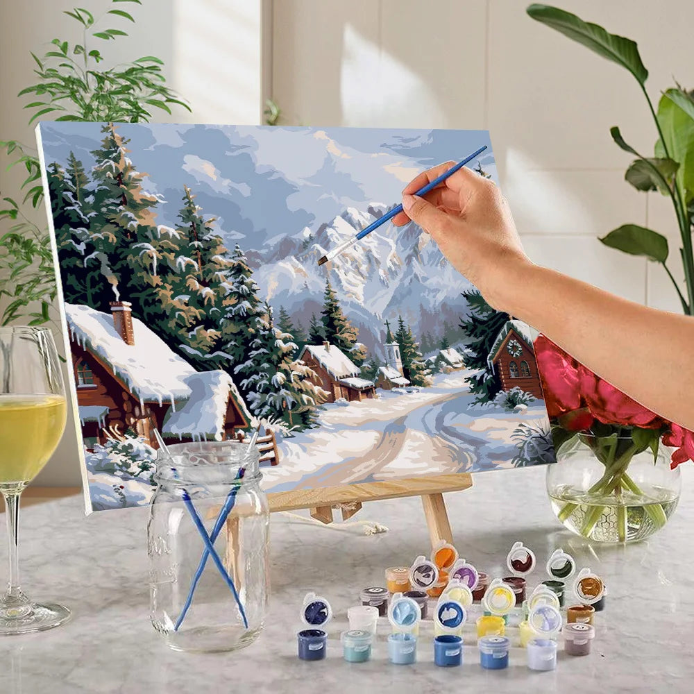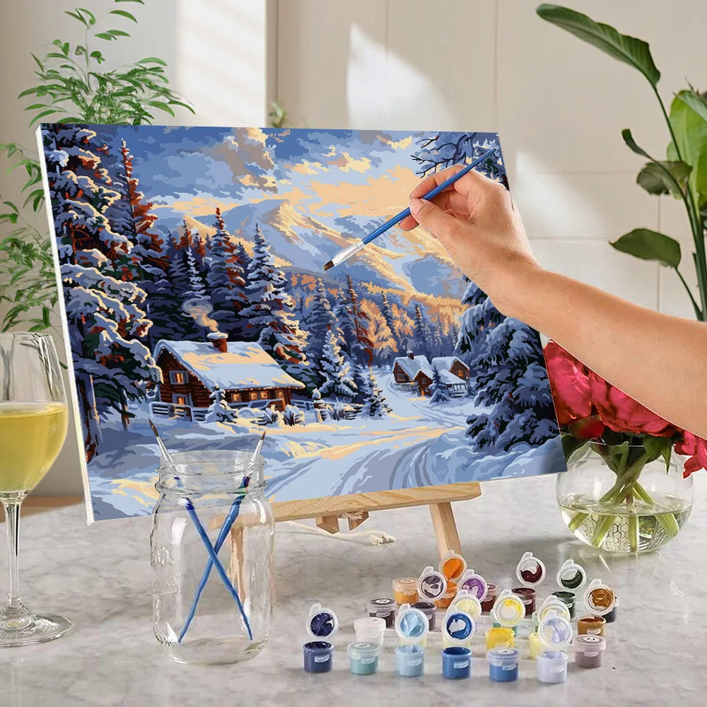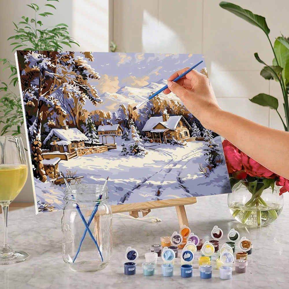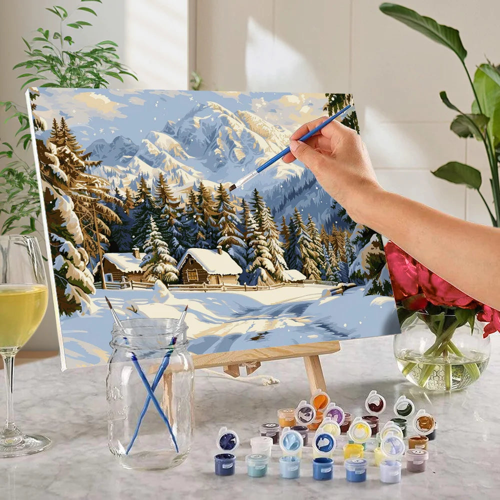 DIY Forest And Snow Scenery Paint By Numbers