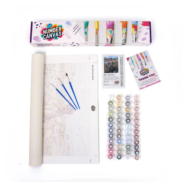 This Custom Paint by Numbers Kit comes with all you need to create a breathtaking masterpiece: premium paintbrush sets, non-toxic and non-fading pigments, 1 pre-printed texture canvas, frames (optional) and 1 easy-to-follow instruction.